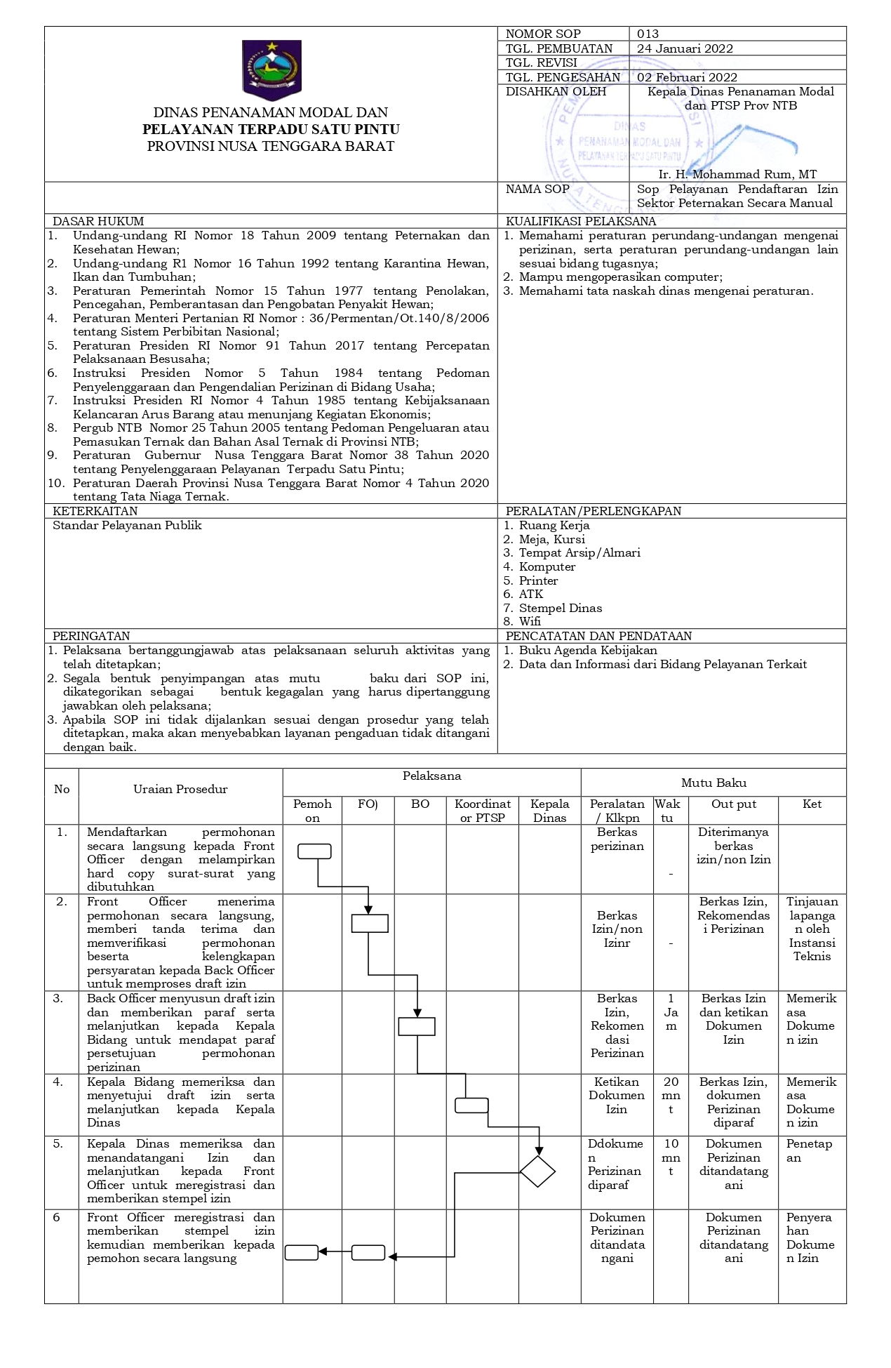 Izin pemasukan dan/atau pengeluaran Ternak Potong antar Provinsi/ Pulau Dinas Penanaman Modal dan Pelayanan Terpadu Satu Pintu NTB