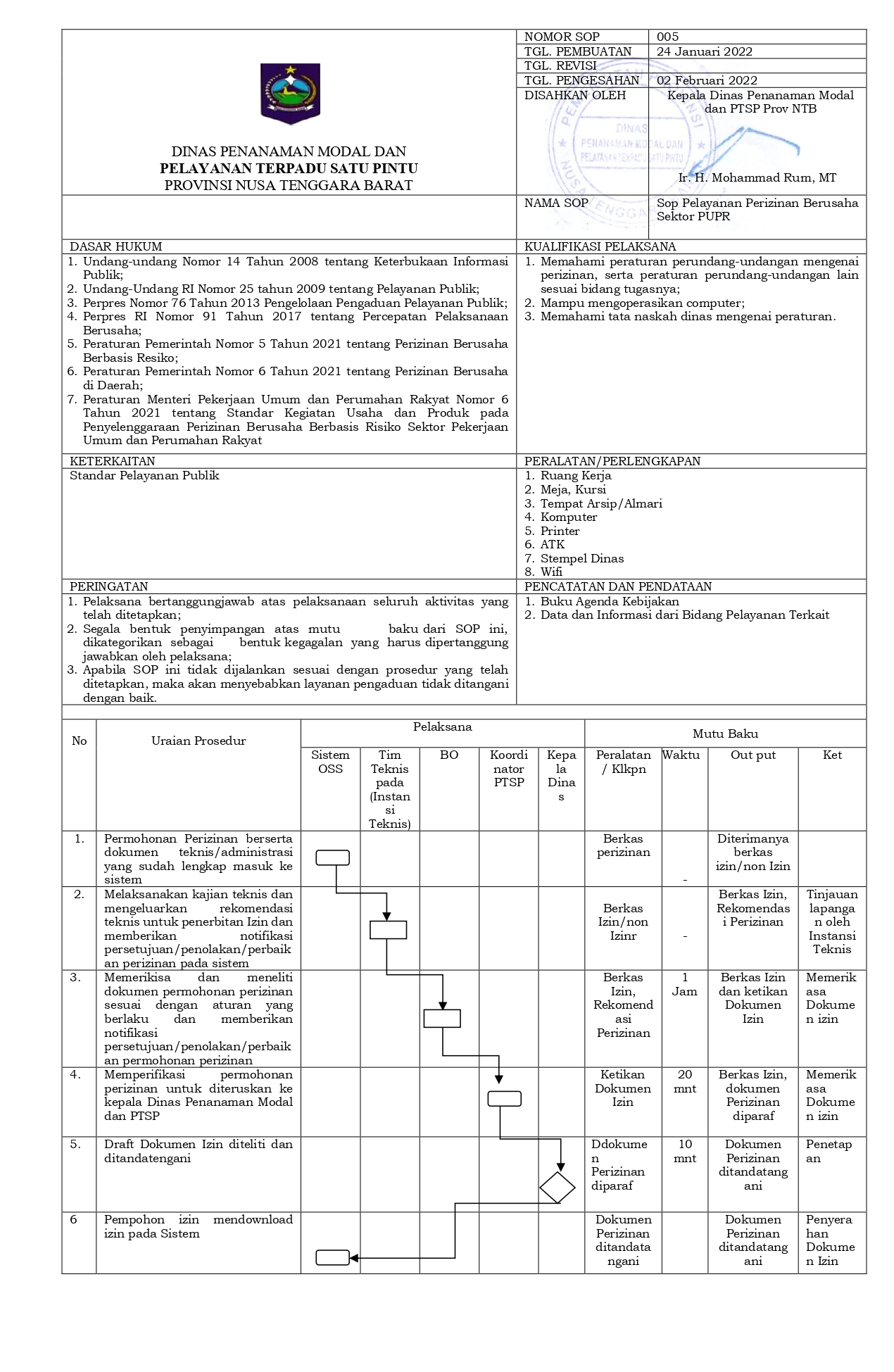 Izin Prinsip Pemanfaatan Ruang Milik Jalan (RUMIJA) pada Ruas Jalan dan Jembatan Provinsi NTB Dinas Penanaman Modal dan Pelayanan Terpadu Satu Pintu NTB