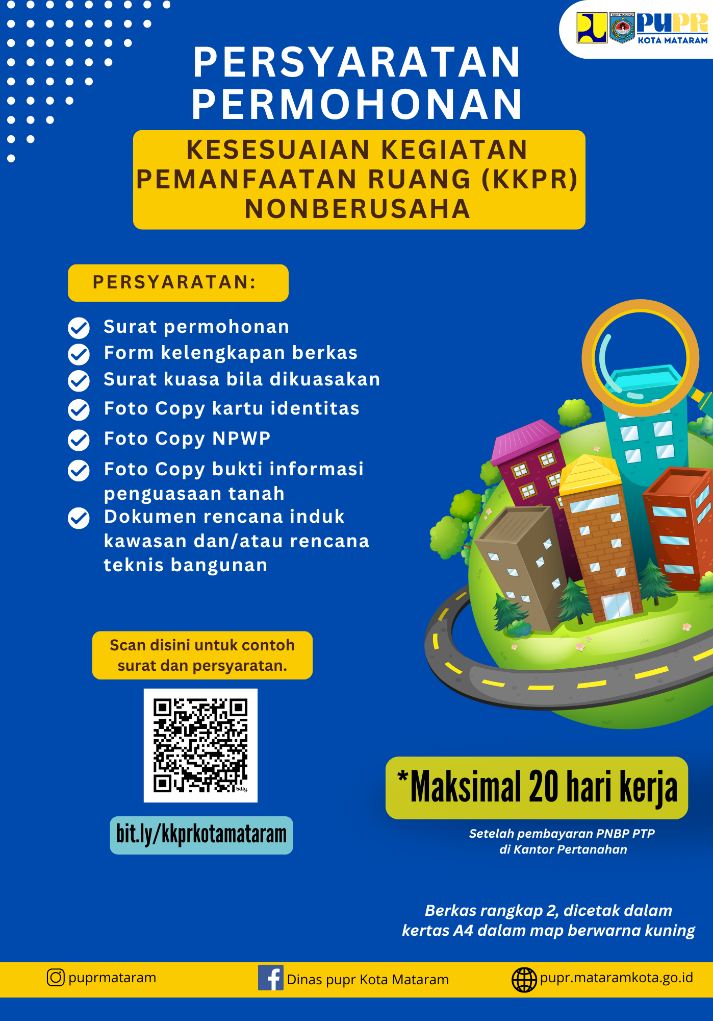 Layanan Pembuatan Kesesuaian Kegiatan Pemanfaatan Ruang (KKPR) Non-Berusaha Dinas Pekerjaan Umum dan Penataan Ruang Kota Mataram